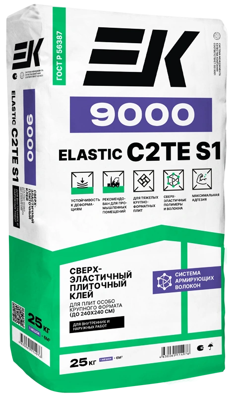 Сверхэластичный плиточный клей для керамогранита особо крупного размера ЕК 9000 ELASTIC (C2 TE S1)