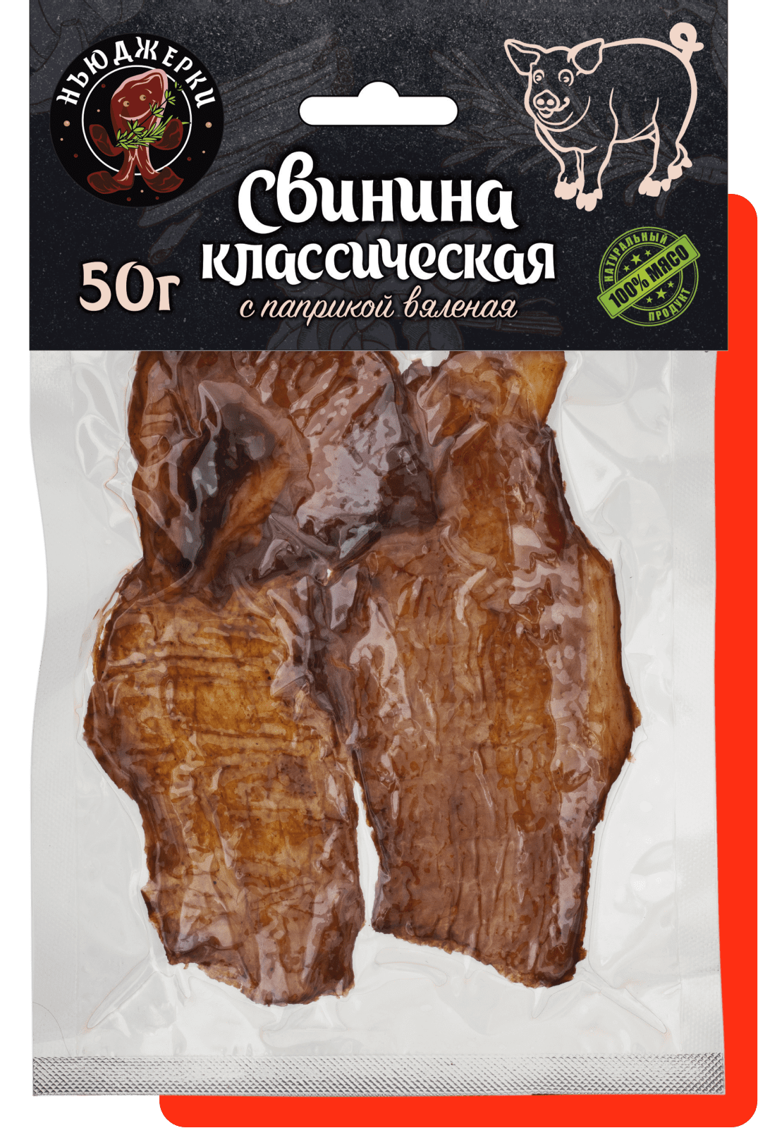 Добавьте этот продукт к пенному, а также как дополнение любого стола. Подарите вашим посетителям мир новых вкусовых ощущений с необычным снеком из классической вяленой свинины.