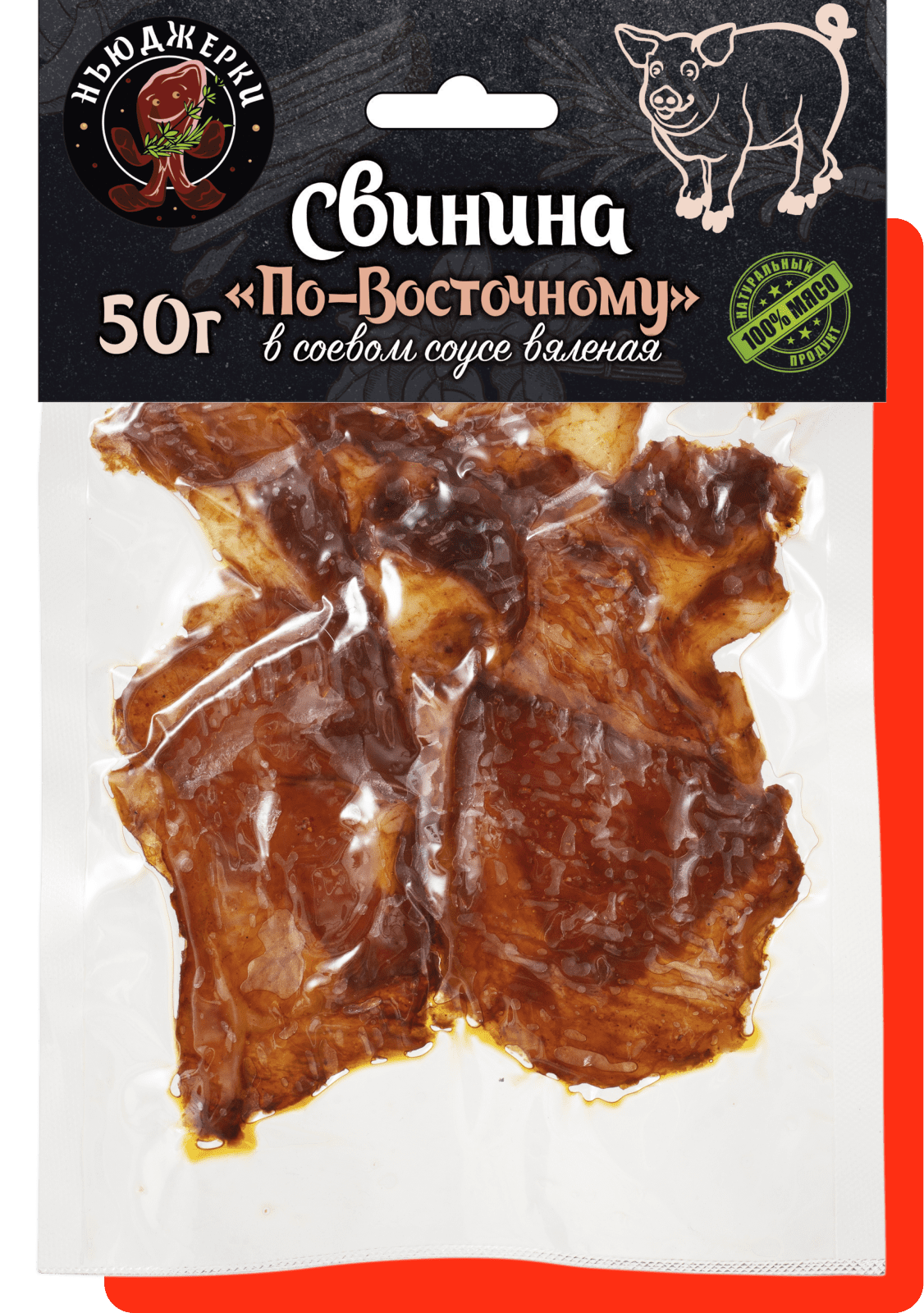 Пикантный вкус этой вяленой свинины достигается благодаря особой комбинации специй и соевого соуса. Тонкий аромат востока, легкая сладость соевого соуса придают этому деликатесу неповторимый шарм.