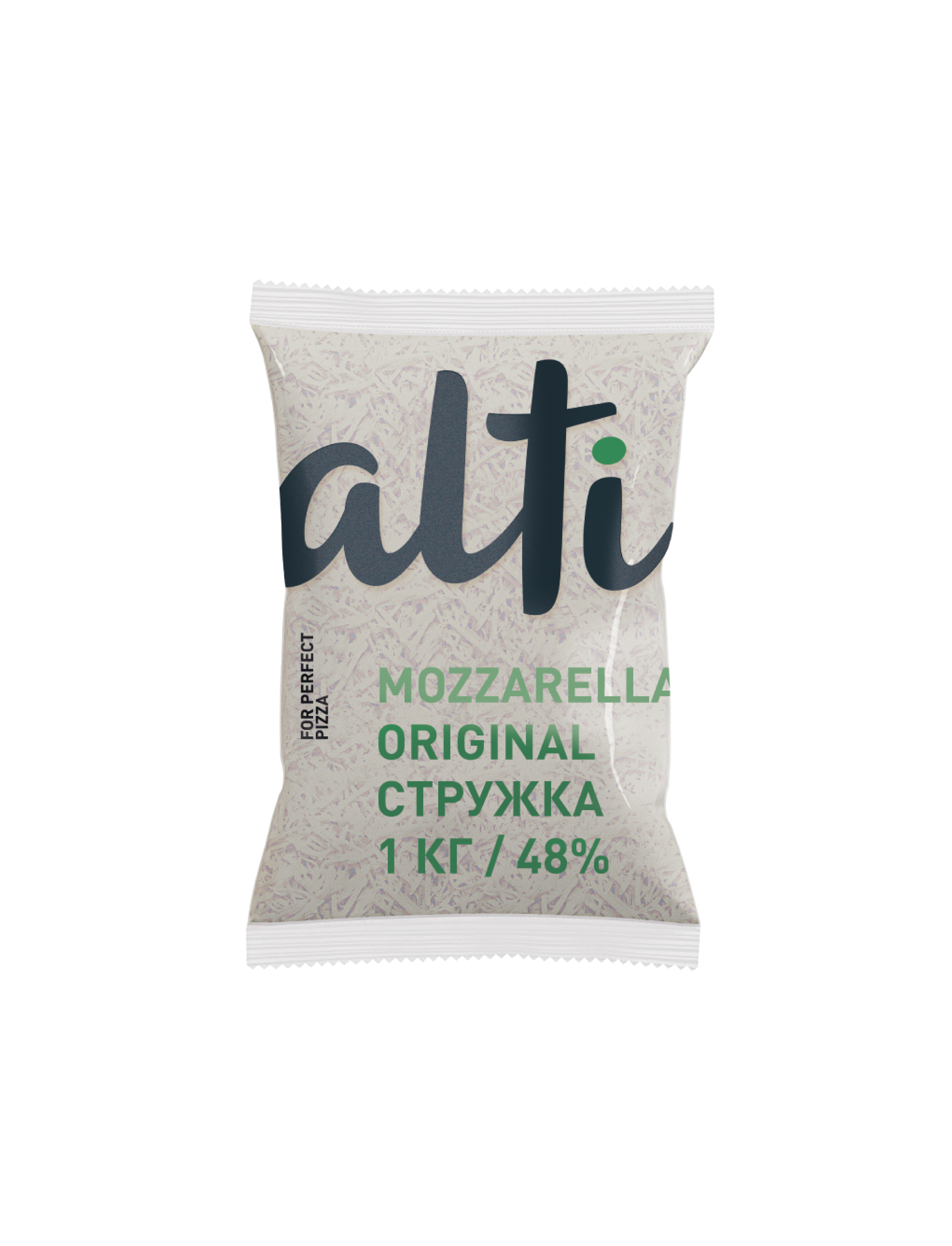 Любой продукт линейки Mozarella Alti может поставляться в виде полуфабриката, готового к применению в виде кубика размером 4х4 мм, либо в виде натертой стружки. Стружка и кубики не слипаются, имеют ровные контуры и отчетливые края. Полуфабрикат поставляется в замороженном виде, позволяя продлить срок годности продукта до 12 месяцев при температуре -18 °С.