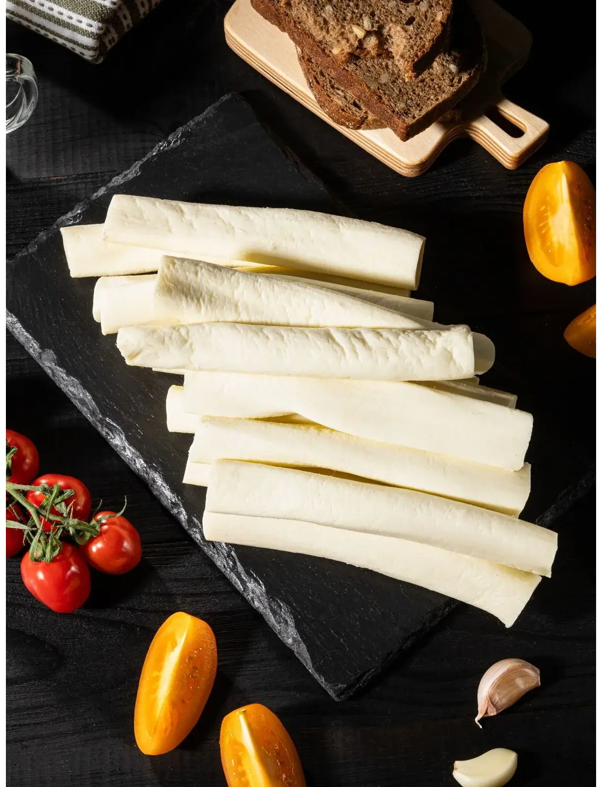 Сыр "Охотничий" - это чаще копченый, полутвердый или рассольный сыр в виде палочек, отличающийся пикантным сливочно-соленым вкусом с ароматом дыма. Он предназначен для сытных перекусов, закусок к пиву/вину, пикников и походов благодаря длительному сроку хранения и удобной форме. Текстура сыра - эластичная, плотная, иногда слоистая (легко разделяется на нити). Делается из коровьего молока с последующим копчением, жирность обычно составляет около 40%.