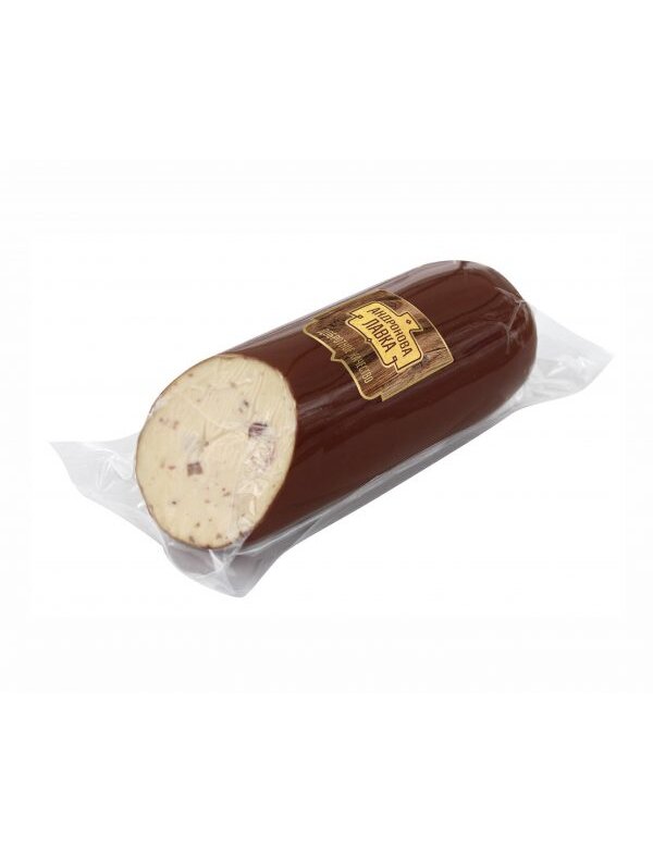 Состав: сыры; масло сливочное; вода питьевая; творог; молоко сухое обезжиренное; сыворотка молочная сухая; загуститель – крахмал кукурузный; окорок свиной; комплексная пищевая добавка; сухая молочная сыворотка; сахар; специи: чеснок, паприка.