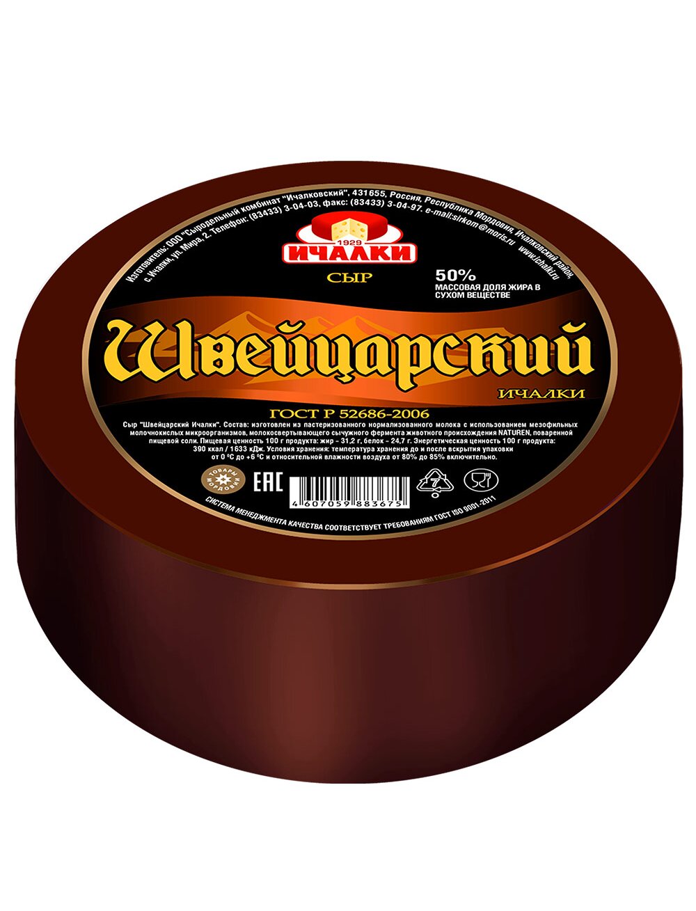 Сыр «Швейцарский» твердый сыр с длительным сроком созревания. Вкус сыра ореховый, слегка сладковатый и острый, молочный. «Швейцарский» станет прекрасным дополнением салатов, а также украшением сырной тарелки. Как самостоятельное блюдо сыр «Швейцарский» гармонично сочетается с фруктами, особенно с яблоком, грушей и персиком. Утонченный по своему вкусу и аромату сыр идеально гармонирует с мясными блюдами и овощами.