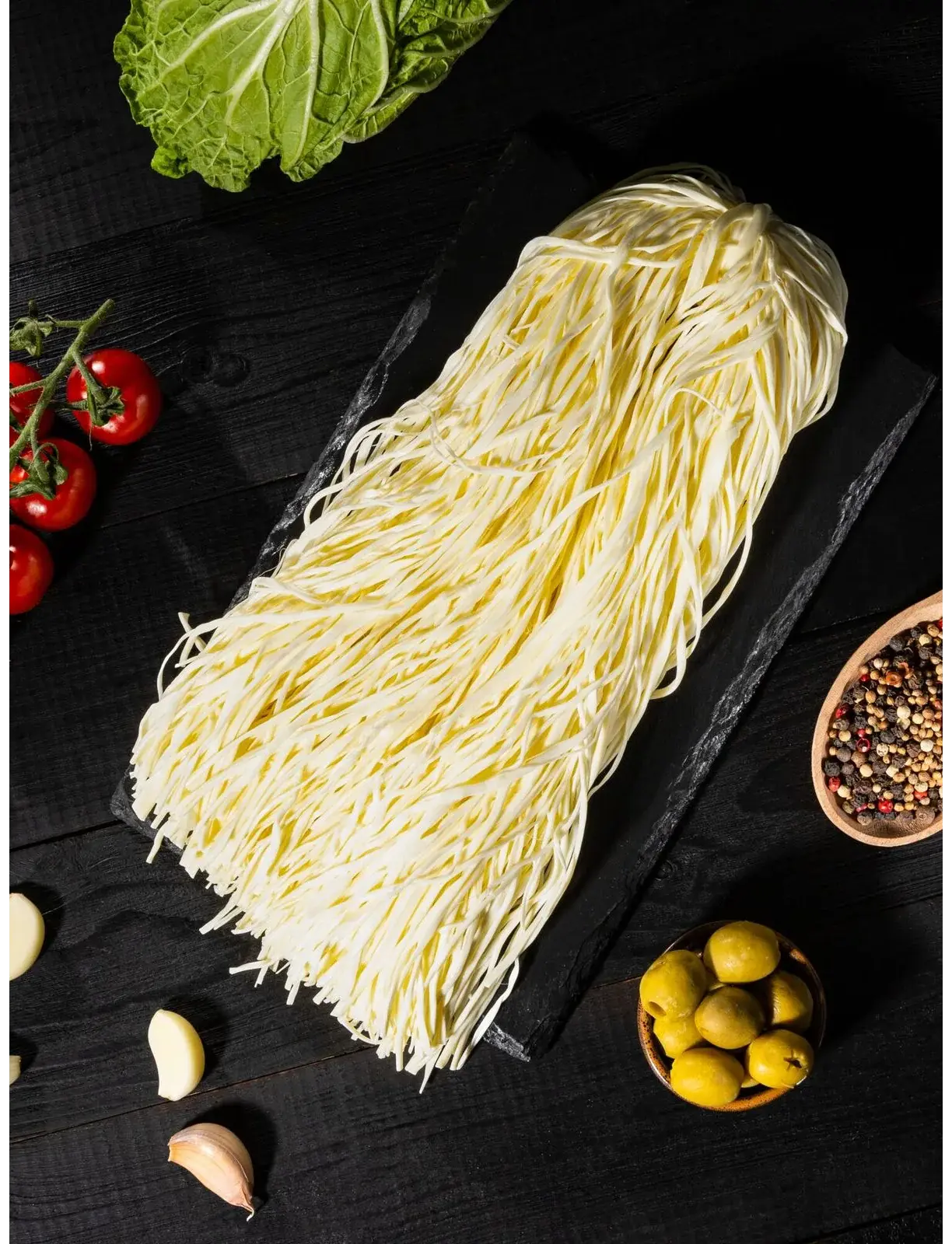 Сыр "Спагетти" - это волокнистый рассольный сыр, производящийся в виде длинных тонких нитей, напоминающих спагетти. Он имеет соленый сливочный или копченый вкус. Используется как самостоятельная закуска, снек к пиву, ингредиент для салатов или украшение блюд. Благодаря форме, придает оригинальный вид сырной нарезке. Производится из молока, соли и закваски, часто вручную. Содержит много белка, удобен в употреблении. Сыр "Спагетти" также может выпускаться с добавлением специй (например, аджики).