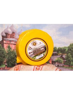 «Воскресенский» – это фирменный сыр завода «Воскресенский сыродел». Своя собственная оригинальная рецептура позволила создать сыр, который удовлетворит вкусы самых взыскательных покупателей. «Воскресенский» сорт – это традиционный сычужный сыр. Консистенция сыра однородная, нежная и пластичная. Цвет классический «сырный» – от слабо-желтого до желтого. Сыр притягивает ярким вкусом, наличием остроты и легкой кисловатости без посторонних оттенков и запахов. На разрезе сыр имеет равномерно расположенный рисунок, состоящий из глазков круглой, овальной и угловатой формы, также допускается отсутствие рисунка. «Воскресенский» сыр изготавливается только из натурального молока, благодаря чему аромат и вкус получились столь завораживающими, что он без сомнения полюбится каждому. «Воскресенский» можно использовать и для сырных тарелок, и для бутербродов, и для множества различных блюд, как холодных, так и горячих, в рецептуру которых входит сыр.