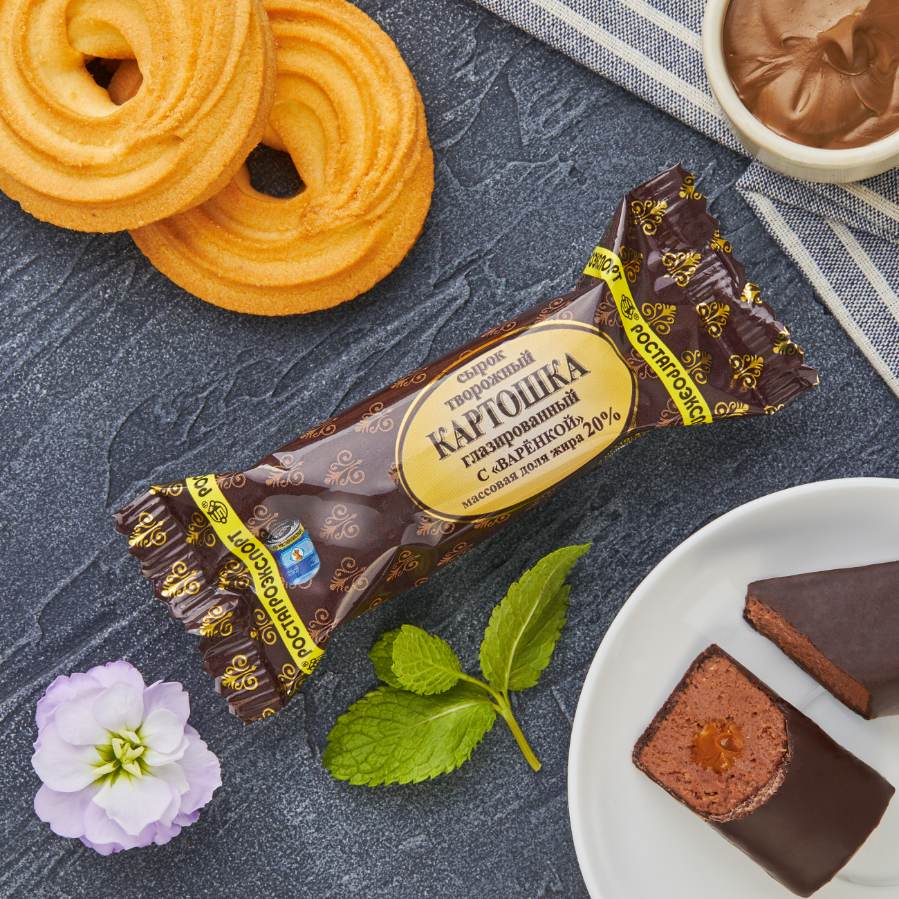 СЫРОК ТВОРОЖНЫЙ ГЛАЗИРОВАННЫЙ «КАРТОШКА» С «ВАРЕНКОЙ»