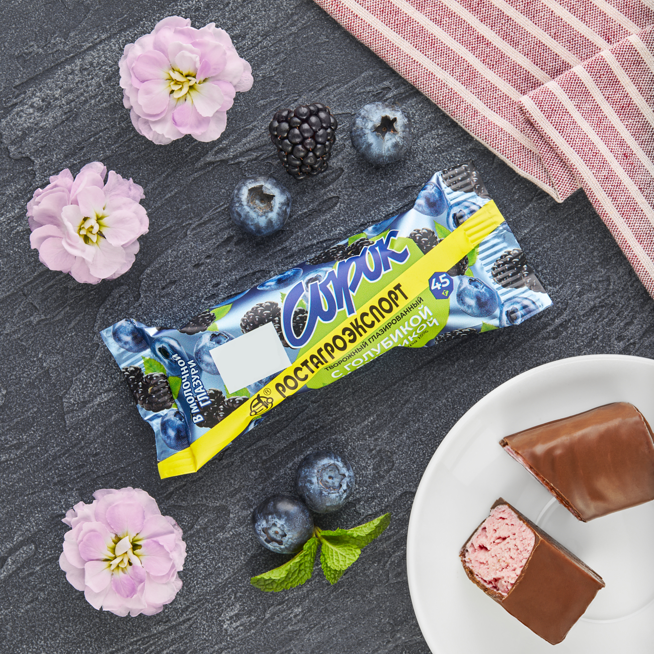 Сырок творожный глазированный в молочной глазури с голубикой и ежевикой