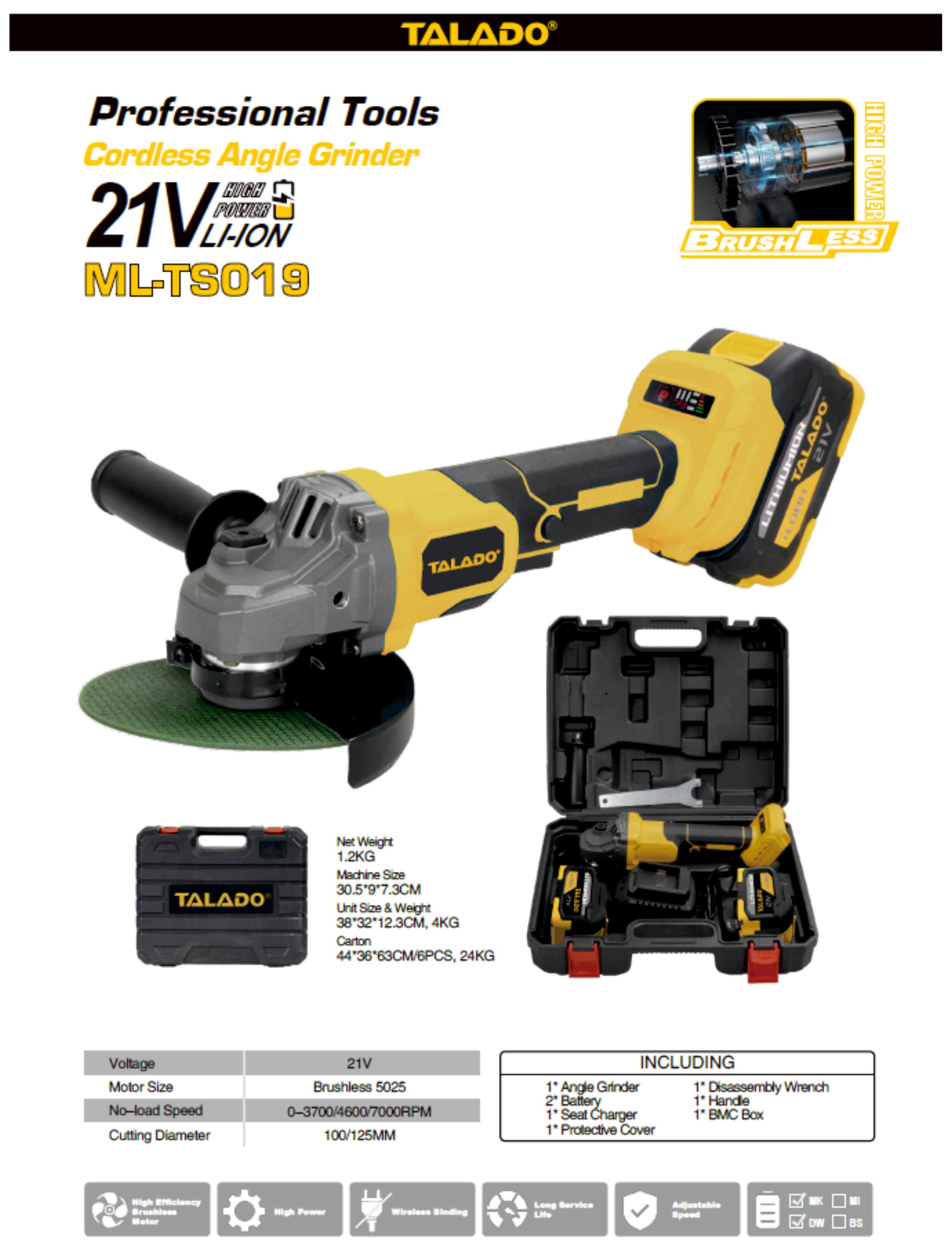 Аккумуляторная УШМ Talado.
