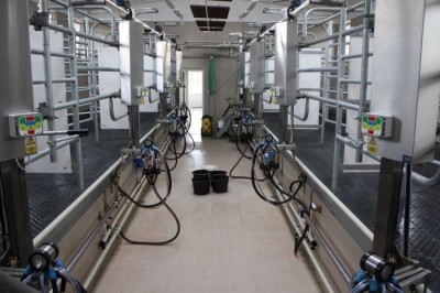 Данный тип доильных залов применяется для небольших стад с возможностью приспособления доильного зала под планировку здания. Доильный зал этого типа дает возможность индивидуального входа и выхода коров, обеспечивает удобный подход дояра к вымени коровы. Для ограждающей конструкции используется универсальная сборная система из оцинкованной стали. Управление входными дверками может быть ручным, пневматическим, либо при помощи так называемого пневматического автотандема.