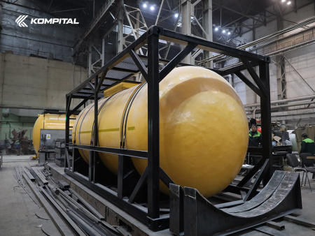 Танк-контейнеры - это специализированные емкости для транспортировки и хранения жидких, химически агрессивных, наливных грузов, состоящие из прочной цистерны из стекловолокна и смол, закрепленной внутри стандартной стальной рамы ISO. Они созданы для безопасной мультимодальной перевозки, обеспечивая высокую стойкость к коррозии, легкий вес и долговечность. Применяются как мобильные или стационарные емкости, устойчивые к УФ-излучению и механическим нагрузкам. Диаметр - от 1,4 до 2,25 м. Объём - от 10 до 27 м3. Внутреннее давление - до 0,4 МПа.