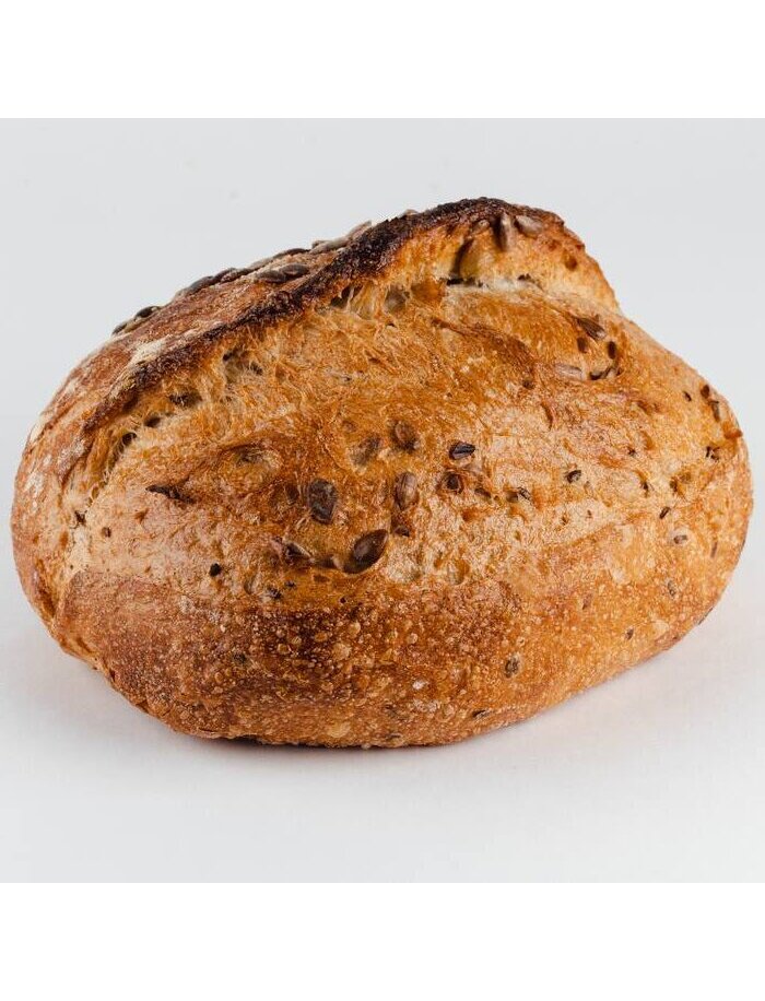 Тартин – традиционный подовый пшенич-ный хлеб из влажного теста на закваске с добавлением цельнозерновой муки. Тартин называют экзаменом для пекаря. Весь путь до румяной круглой буханки нужно пройти самостоятельно: вырастить закваску, следить во время долгих часов брожения за состоянием теста, руками чувствовать упругость замеса и научиться определять готовность хлеба в печи. Придать хлебу необычные нотки помогают семечки подсолнечника, тыквы и льна.