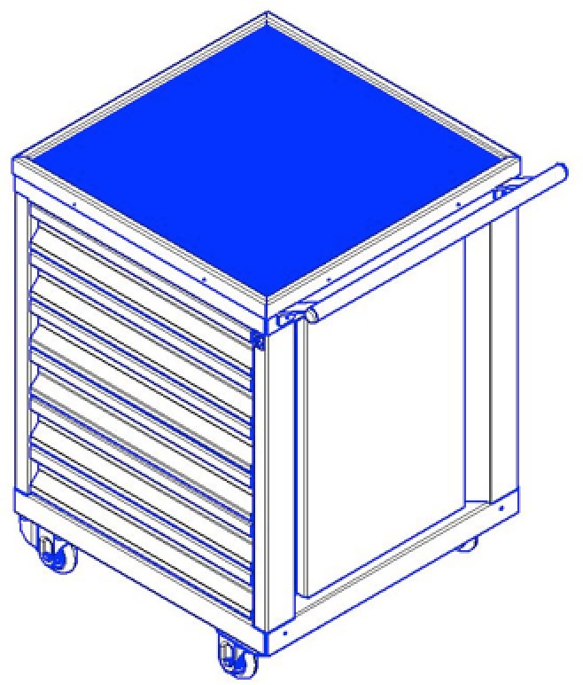 Рама изготовлена из стали толщиной 1,5 мм, ящики и стенки изготовлены из стали толщиной 1 мм, 6 малых ящиков на усиленных шариковых направляющих полного выдвижения с системой центрального запирания.