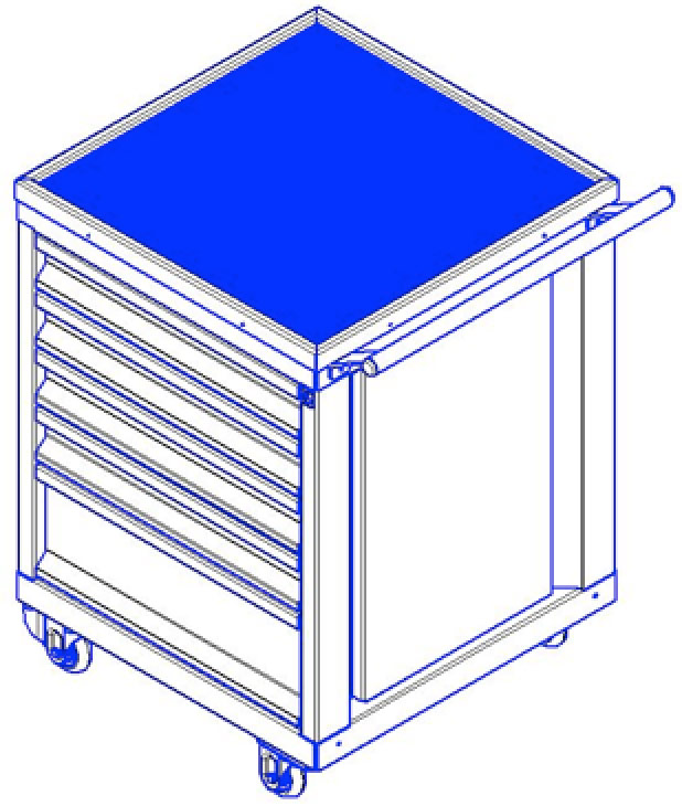 Рама изготовлена из стали толщиной 1,5 мм, ящики и стенки изготовлены из стали толщиной 1 мм, 4 малых ящика и 1 большой на усиленных шариковых направляющих полного выдвижения с системой центрального запирания.