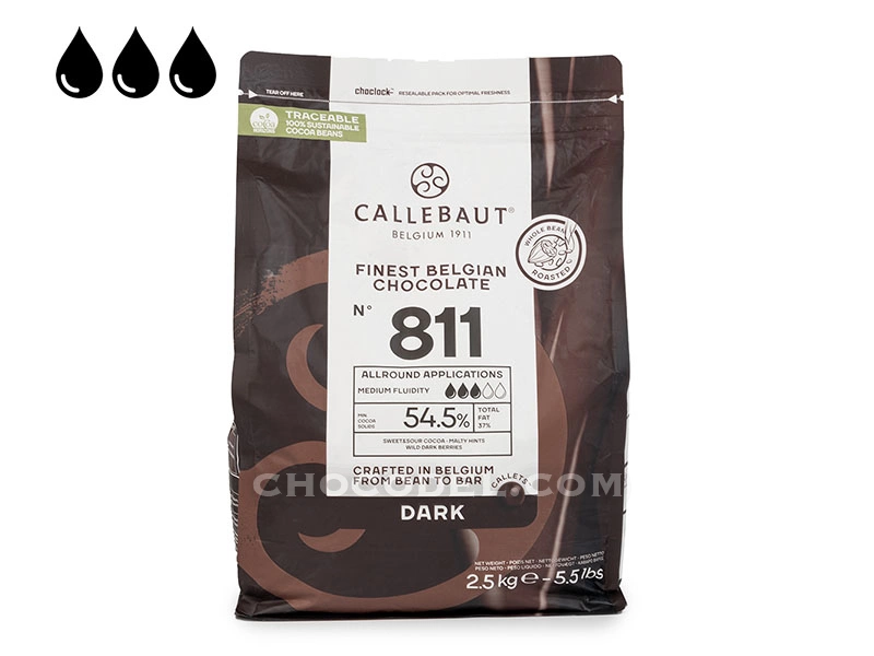 Обладает универсальной текучестью в три капли. Подходит для создания самых разных кондитерских шедевров, будь то муссы, конфеты, шоколадные плитки или глазурь. Темный шоколад можно использовать для фонтанов, но при этом добавив в него какао-масла (на 2,5 кг. шоколадной основы 130 гр. масла).