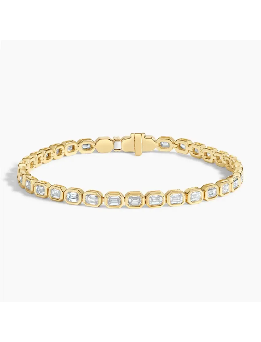 Теннисный браслет "Эмеральд" - это классический гибкий браслет-цепочка из драгоценного металла, украшенный сплошной непрерывной дорожкой из камней (изумрудов или их имитации). Он предназначен для повседневного ношения и особых случаев, символизируя элегантность, "тихую роскошь" и статус, благодаря надежной застежке и удобству. Идеально подходит как универсальный аксессуар: сочетается и со спортивным стилем, и с вечерним платьем, подчеркивая изысканность. Форма бриллианта - изумруд. Масса бриллианта - 0,19 карат. Цвет бриллианта - 3 - G. Чистота бриллианта - 4 - VS1.