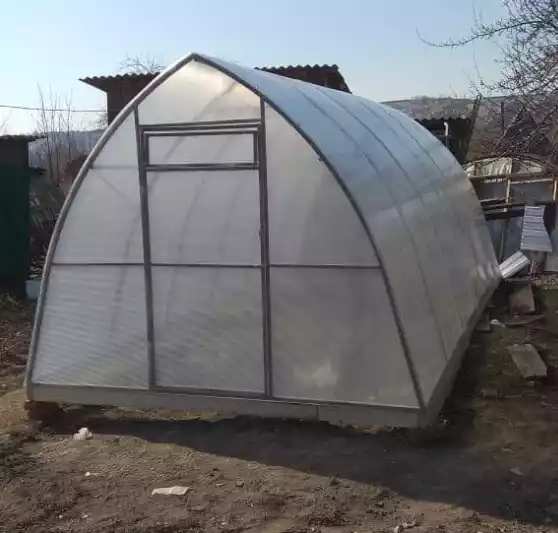 Профильная труба из оцинкованного металла 20х30 ДУГИ цельные, труба электросварная! Перекладина в каждой дуге для дополнительной жесткости! Ширина: 2,7 м. Длина: 4, 6, 8,10 Кратно 2 метрам Шаг между дугами: 1 м. 2 двери, 2 форточки, фурнитура, саморезы Расстояние между дугами: 1мм