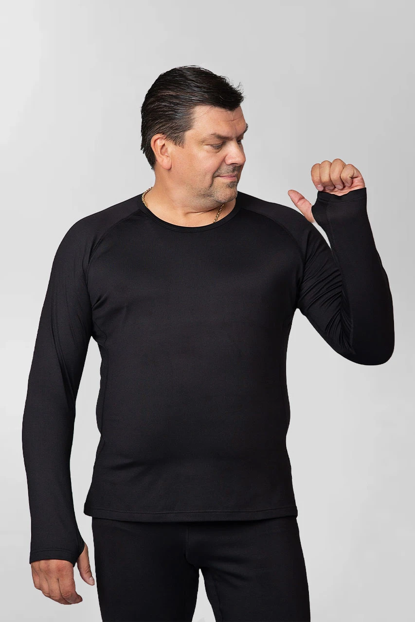 Термобелье мужской ТермоЛайн удерживает до 85% полезного тепла, хорошо выводит влагу. Манжета с вырезом под большой палец позволяет зафиксировать удлиненный рукав, а эластичная окантовка по краю рукава и брюк обеспечивает плотное прилегание белья к телу и препятствует проникновению холода под одежду.