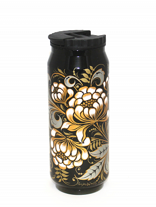 Термокружка 0,5 литра. Изготовлена в полном соответствии с традиционной хохломской технологией золочения. Роспись «Пионы». Лаковое покрытие и многократный высокотемпературный обжиг делает изделие влагозащищенным и износоустойчивым. Все применяемые при производстве материалы натуральны и экологичны. Термокружка предназначена для хранения холодных и горячих напитков, он будет хорошим подспорьем рыбакам, охотникам и любителям активного отдыха. На каждом изделии имеется подпись автора росписи. Упаковка из брендированного картона.