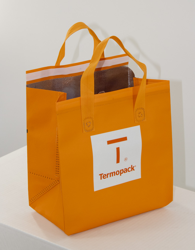 Внутренний слой Термотоута представляет собой фольгированный материал, благодаря которому, удерживается и сохраняется температура , что и позволяет легко и безопасно переносить готовую еду или продукты.