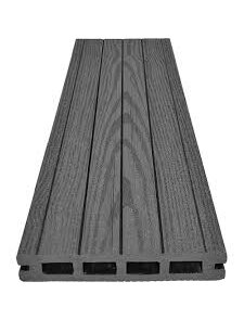 Террасная доска бесшовная двусторонняя - это полимерное напольное покрытие, имитирующее дерево, укладываемое по системе "шип-паз" без видимых зазоров. Она имеет два рабочих рельефа (с двух сторон) серого цвета, что делает покрытие монолитным, стильным и защищенным от мусора, идеально подходящим для уютных, защищенных террас и зон у бассейна. Не видно лаг, не застревают каблуки, не прорастают растения. На основе ПВХ. Упаковка в термоусадочную пленку, с картонными вставками для удобства траспортировки. Размер: 25*145*4000 мм, 6000мм.