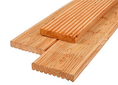 Классическая террасная доска из лиственницы. Рабочая сторона - мелкий "вельвет", предохраняющий от скольжения по мокрой поверхности, на обратной стороне широкие компенсационные пазы предохраняющие доску от продольного растрескивания. Сибирская лиственница – самая устойчивая к влажности древесина, произрастающая на территории России. Поэтому доска из лиственницы традиционно используется при строительстве террас, беседок и зон отдыха, садовых дорожек, причалов и мостков. В отличии от доски из ДПК имеет длительную историю эксплуатации и все её тонкости известны. Фактически террасная доска из лиственницы за счёт высокого содержания природных смол не требует дополнительной защиты, тем не менее наличие современных масел для дерева и лессирующих красок позволяет придать доске любой оттенок в соответствии с требованиями дизайн-проекта и усилить природную стойкость. Современные скрытые элементы крепления палубной доски обеспечивают настилу презентабельный вид. Производим весь цикл работ от поставки доски до монтажа настила.