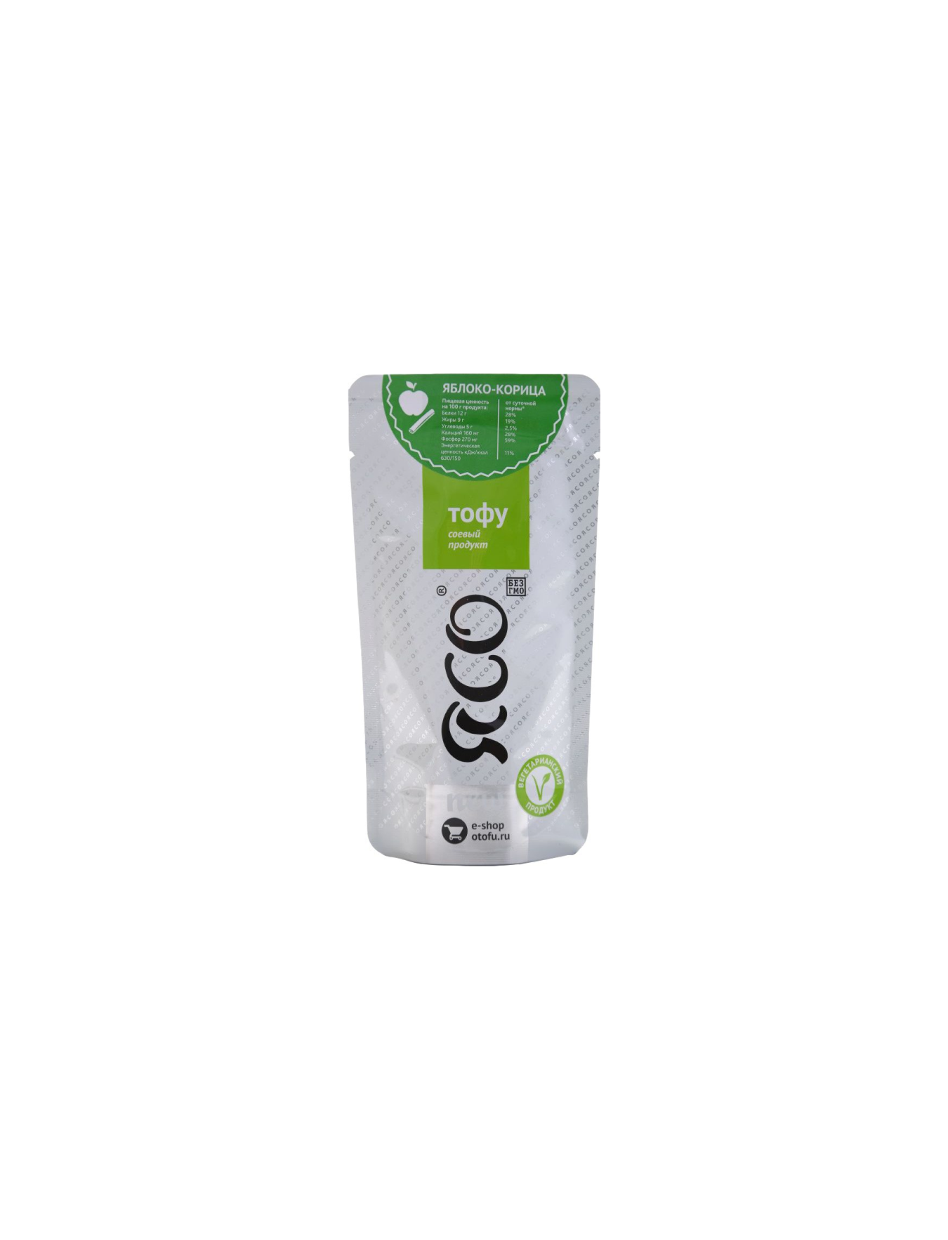 Состав: соевые бобы, вода, хлорид магния, хлорид кальция, яблоко, корица, морская соль, кислота лимонная, натуральный ароматизатор "Яблоко"