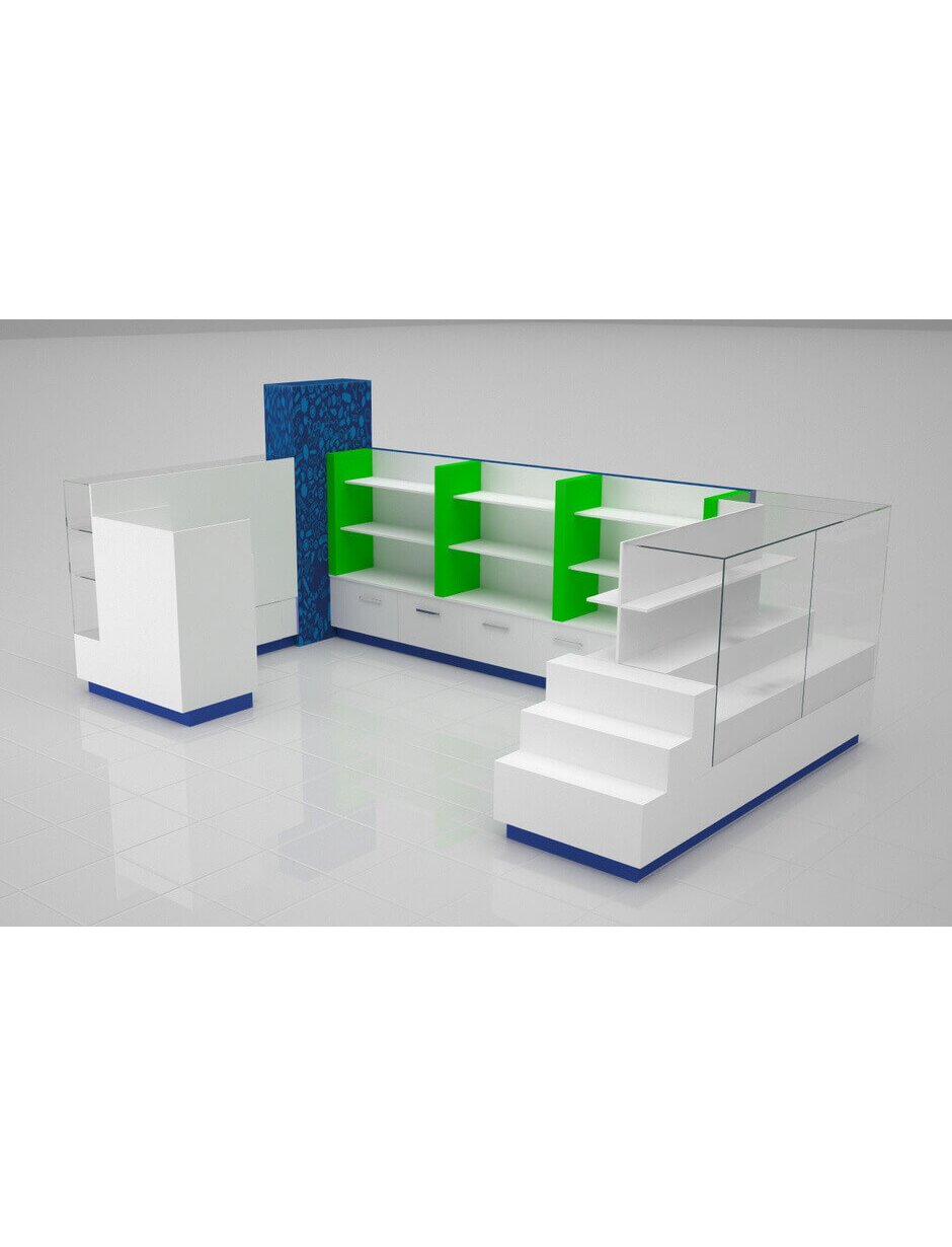 Материал: МДФ 16мм, покрытый акриловой эмалью, внутреннее наполнение ЛДСП 16мм. Витрины — стекло 8мм.