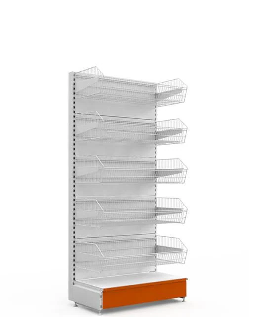 Торговый стеллаж с пятью проволочными корзинами