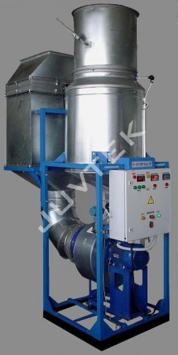 Торнадо-П. Приточная вентиляционная установка используется для промышленного обогрева, поддержания в автоматическом режиме температуры, влажности и избыточного давления воздуха в производственных помещениях. Работа электрокалориферной вентиляционной установки основана на принципе нагрева воздуха в специальной вихревой электрокалориферной камере и его принудительной подачи (под большим избыточным давлением) внутрь помещения. Номинальная мощность нагревателей- 45 кВт, минимальный объем воздуха в минуту - 75 куб.м/мин, диаметр выходного патрубка установки - 500мм.