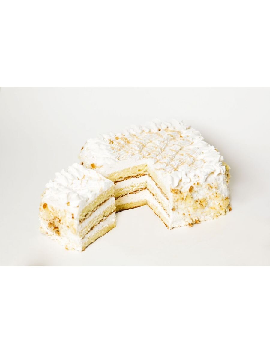 Изделия из бисквитного теста, прослоенного сливками и кремом «шарлот», пропитанного молочным сиропом, декорирован сливками и гелем.