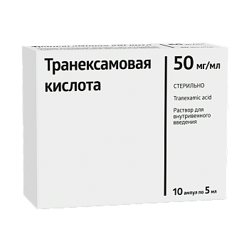 Транексамовая кислота - это синтетический аналог аминокислоты лизин, мощный антифибринолитический препарат, останавливающий кровотечения путем предотвращения разрушения тромбов. Она используется для лечения кровопотерь при операциях, травмах, маточных и носовых кровотечениях, а также в косметике против пигментации. Поставляется растворах для инъекций (в/в) - 10 ампул в упаковке по 5 мл.