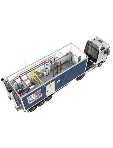 Транспортабельная котельная установка - это мобильная современная автономная котельная полной заводской готовности; она устанавливается на один из видов автомобильного шасси, полуприцеп (контейнеровоз), тракторный полуприцеп, что позволяет перемещать котельную по дорогам общего пользования без оформления специальных разрешительных документов. Она обеспечивает отопление и горячее водоснабжение жилых, социальных и промышленных объектов. Тепловая мощность - до 50 МВт. Паропроизводительность - до 50 т/ч. Средний срок службы - до 20 лет