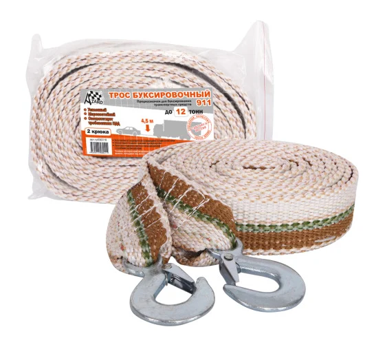 Трос буксировочный 12 тонн (ЛЕНТА,2 крюка,4.5м 8 шт коробка)