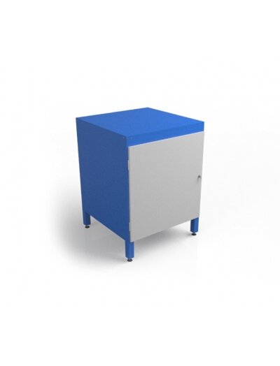 Характеристики: Тип конструкции: сварной Назначение: тумба под станок Нагрузка: равнораспределенная до 500 кг Ширина: 500 мм Глубина: 550 мм Высота: 800 мм Покрытие: полимерно-порошковое Объем: 0,24 м3 Комплектация: Регулируемые опоры – 4 шт. Дверь на замке – 1 шт. Полки металлические – 2 шт. Описание: Металлическая тумба под станок имеет жесткий сварной каркас из толстостенной профильной трубы сечением 40*40. Тумба обшита листом металла, в тумбе предусмотрены полки для инструмента и оснастки станка. Столешница тумбы выполнена из влагостойкой фанеры толщиной 24мм. и накрыта листовым кожухом толщиной 2мм. В изделии предусмотрены регулируемые опоры для выравнивания тумбы по плоскости.