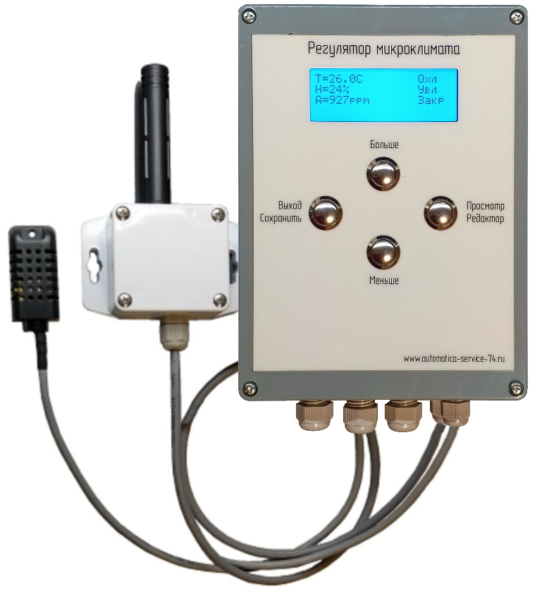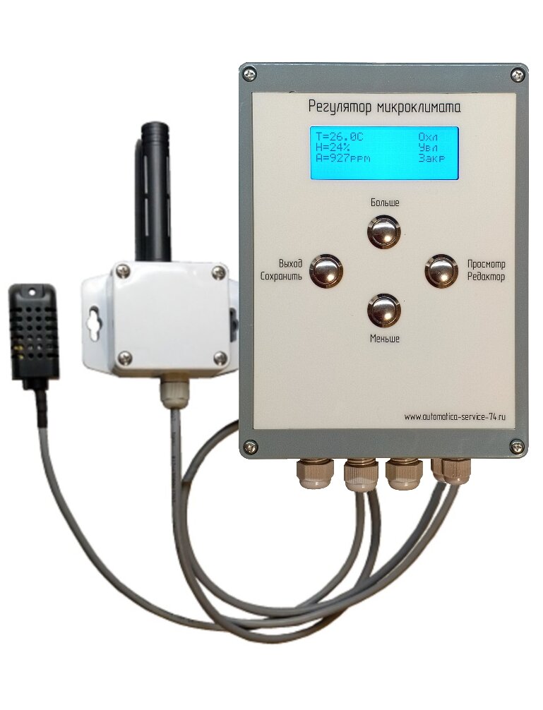 ТВСО2Рег-3Ц-3Р-ДИСТ Регулятор температуры, влажности и СО2, 3 реле, СМС-контроль, RS485/ModbusRTU. Датчики в комплекте: температуры, влажности, СО2.