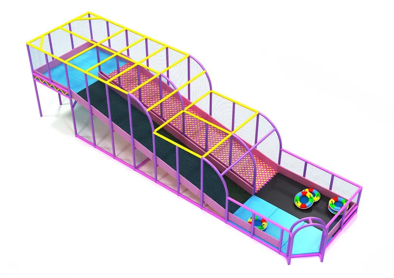 Тюбинговая горка - это короткий, но увлекательный аттракцион для катания на надувных санках - "ватрушках", имитирующий снежную горку, спуск с которой обеспечивает скорость, драйв и выброс адреналина, часто используется в игровых комплексах для детей и взрослых, обеспечивая безопасность благодаря специальному покрытию и контруклону. Компактная тюбинговая горка, оборудованная спуском длиной 14,7 м. и подъемом с противоскользящим покрытием. Конструкция позволяет сделать горку частью игрового лабиринта или использовать ее в качестве отдельного аттракциона. Тюбинговые горки могут быть выполнены в любых цветах и оформлены тематическими декорациями. Габаритные размеры - 14.7 * 4.0 м.