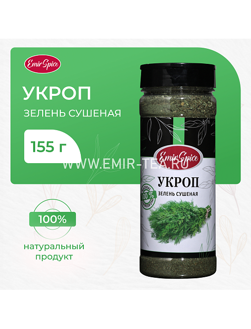 Укроп — уникальное растительное сырье, которое имеет сильный пряный освежающий вкус и запах, богатый состав и благотворно воздействует на многие системы организма. Его широко применяют, как в кулинарии, так и в народной медицине. Сухой укроп сохраняет практически все минералы, микро- и макроэлементы, полезные для организма Диетологи рекомендуют добавлять укроп в пищу тем, кто желает похудеть или следит за весом. Растительная клетчатка, содержащаяся в составе, очищает организм от шлаков и токсином, стимулирует обмен веществ, ускоряет процесс расщепления жиров, обеспечивает быстрое и длительное чувство насыщения, благодаря чему уменьшается объем порций, отпадает необходимость в дополнительных перекусах. Сушеный укроп имеет пряный освежающий запах и вкус. Его используют как самостоятельную приправу или в смесях пряностей для придания аромата горячим и холодным блюдам: мясу, картофелю, грибам, овощам, запеканкам, супам. Укроп используют в качестве компонента для соуса.