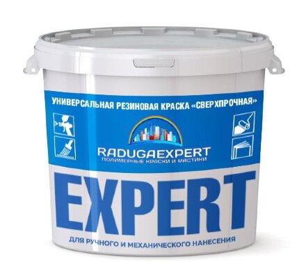 Универсальная Резиновая краска «СверхПрочная» - предназначена для наружных и внутренних работ по всем видам оштукатуренных, бетонных поверхностей внутри и снаружи помещений, подвергающимся интенсивному воздействию атмосферных осадков, влаги, солнечному излучению, интенсивному мытью. Рекомендуется для окраски отмосток зданий, влажных помещений, фасадов, для дополнительной гидроизоляции крыш и бассейнов. Краска имеет высокую эластичность.