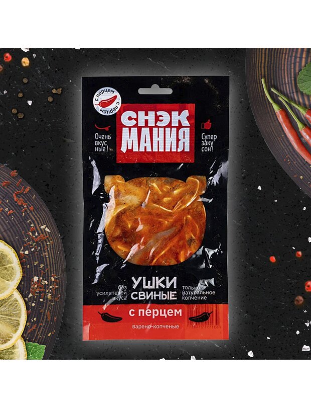 Уши свиные, соль поваренная пищевая, перец красный молотый острый, консерванты:Е200, Е211.