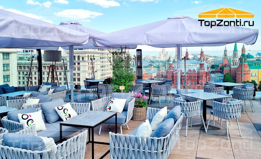 Тип: зонт с центральной опорой больших размеров Размеры типовые: Телескопы размером 4х4, 4.5х4.5, 5х5, 5.5х5.5, 6х6 м Высота до купола: Высота в сложенном виде -3.8-5.4 м в зависимости от размера купола. Применение: летнее кафе, терраса, веранда, дача, ресторан, загородный дом, зона отдыха, пляж Опора: Сталь с полимерным покрытием. Размер опоры 1400х1200 мм. Нижнее основание неразборное , в виде замкнутой опорной клети. Фиксация стойки зонта на 4 болта. Стойка: Труба стальная диаметром 102 мм, поворотно-откидная. Спицы: Алюминиевые . Кол-во спиц — 12 шт. Кол-во раскосов- 24 шт. Сечение спиц 30х20 мм ( сэндвич- с двойной стенкой). Толщина сечеия — 5 мм. Особенности: Высокая ветровая устойчивость по 3 классу до 12 м/с. Комплектующие: Россия Ткань: Оxford 600 DEN , с водоотталкивающей полиуретановой пропиткой. Плотность ткани 230 г./м.кв. Услуги по брендированию. Возможно Монтаж: Напольный. Класс ветростойкости: 2-3 ( до 12 м/с). Зависит от размера купола зонта. Складной механизм: Телескопический или рычажный на выбор. Срок службы зонта: 10 лет Срок службы ткани:3 года Форма зонта: Квдарат . Круг. Управление: ручное ( вертикальная тяга). Механизм сложения -телескоп. Пригруз:Плиты тротуарные- 500х500 мм. Вес на одну опору-250-300 кг в зависимости от размера купола. Плиты в стоимость не входят.