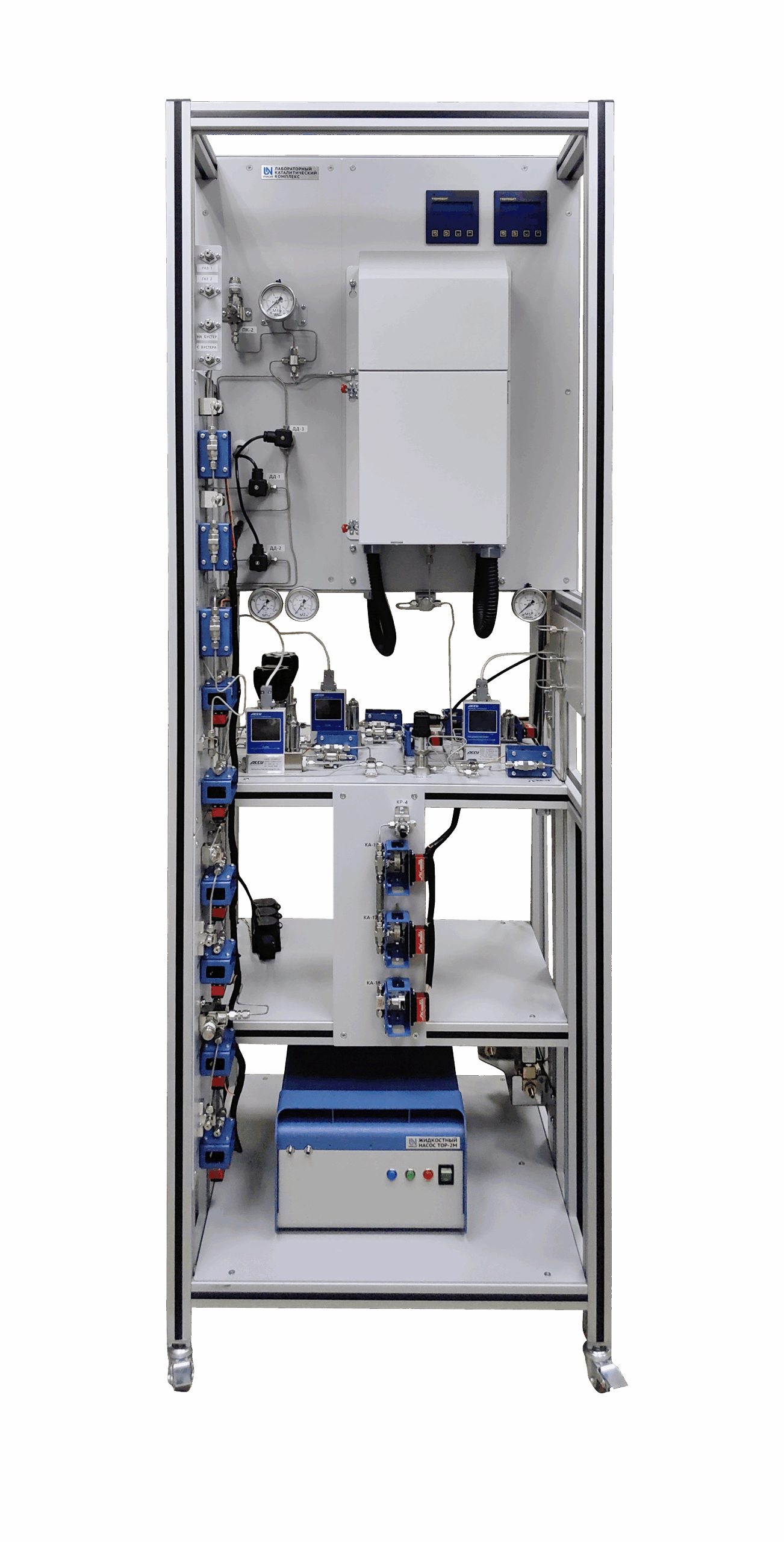 Установка гидроочистки типовая предназначена для тестирования гетерогенных катализаторов различных химических процессов при различных температурах как при атмосферном, так и повышенном давлении (до 18 МПа). В установке реализована 1-реакторная схема с подачей жидкого и газообразного сырья. Применяется проточный реактор с неподвижным слоем катализатора. Установка рассчитана на работу при давлениях до 200 бар. Для работы с данной установкой специально разработан бустерный блок. Максимальная рабочая температура - 500 ºС, рабочая температура исследуемого процесса - около 400 ºС. Жидкостный насос модернизирован для возможности подачи жидкого сырья под давлением до 250 бар. Габаритные размеры - 600*2000*600 мм. Максимальная потребляемая мощность - не более 3 кВт. Исполнение - напольное, каркасное. Вес - 100 кг. Напряжение питания - 220 В.
