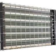 Устройство для разогрева смерзшихся сыпучих грузов в вагонах применяется для размораживания сыпучих грузов, находящихся в полувагонах, представляет собой проходной модуль, по двум сторонам которого установлены панели инфракрасного нагрева. Панели устанавливаются на консольно-шарнирные устройства – КШУ. Модуль располагается внутри ангара вдоль пути надвига. В случае выгрузки вагонов с помощью вагоноопрокидывателя, ангар должен располагаться в непосредственной близости к последнему. Составы с грузом подаются в соответствии с режимом (ритмом) работы вагоноопрокидывателя. В модуле происходит нагрев и поддержание температуры стенок вагонов, до температуры порядка от70 до 90 °С, что обеспечивает выгрузку практически без дальнейшей очистки вагона. Источником тепловой энергии в устройстве для размораживания являются панели. Электропитание панелей и регулирование мощности осуществляется шкафами электропитания. Шкафы имеют исполнение IP-54. Управление устройством для размораживания осуществляет система управления на базе промышленного контроллера с большим сенсорным экраном. Устройства для размораживания также могут быть изготовлены для нижней разгрузки вагонов. В этом случае требуется разогрев всего груза, следовательно, необходимы дополнительные время и энергия, в то время как при разгрузке вагонов с помощью опрокидывателя достаточно разогреть их стены и днище до плюсовой температуры.