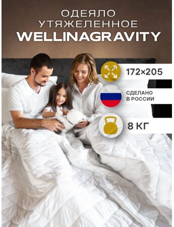 Утяжеленное сенсорное одеяло WELLINAGRAVITY - это одеяло, которое расслабляет, успокаивает, ускоряет засыпание, продлевает фазу глубокого сна и помогает легче вставать по утрам. Оно действует по принципу глубокого давления и создает успокаивающий эффект объятий. В составе только экологичные материалы: премиальный сатин (хлопок, 100%), наполнитель стеклянные гранулы и полиэфирное волокно плотностью 200 г/м2. Утяжеленное одеяло подходит для всесезонного использования. Благодаря структуре оно отлично пропускает воздух и создает оптимальный микроклимат в любое время года. Стежка наилучшим образом удерживает гранулы в ячейках 9х9 и фиксирует наполнитель в ячейках,предотвращая его ссыпание. Гравитационное одеяло рекомендовано взрослым и детям. Подойдет для любой кровати, украсит интерьер спальни, обеспечит комфортный отдых на даче, в машине и в путешествии. Размер - 172*205 см. Цвет - белый. Вес - 8 кг.