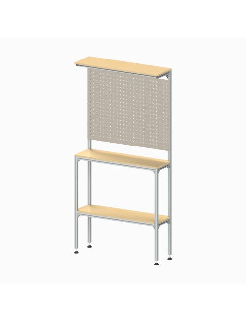 Узкий стенд-стойка с перфорированной панелью, на колесах или регулируемых опорах, из алюминиевого конструкционного профиля - удобное и практичное решение для демонстрации различного оборудования и систем, которые нужно разместить и соединить для удобного обзора в учебных классах, демонстрационных залах, выставках, диспетчерских и т.д. Каркас стенда выполнен из конструкционного анодированного профиля серии 30 и оснащен 4-мя регулируемыми шарнирными винтовыми опорами для точного выравнивания по высоте и плоскости. Столешница – ЛДСП 16 мм (возможно изменение материала, толщины и цвета) Перфорированная панель – Сталь 1,5 мм, полимерно-порошковая покраска (цвет можно выбрать)