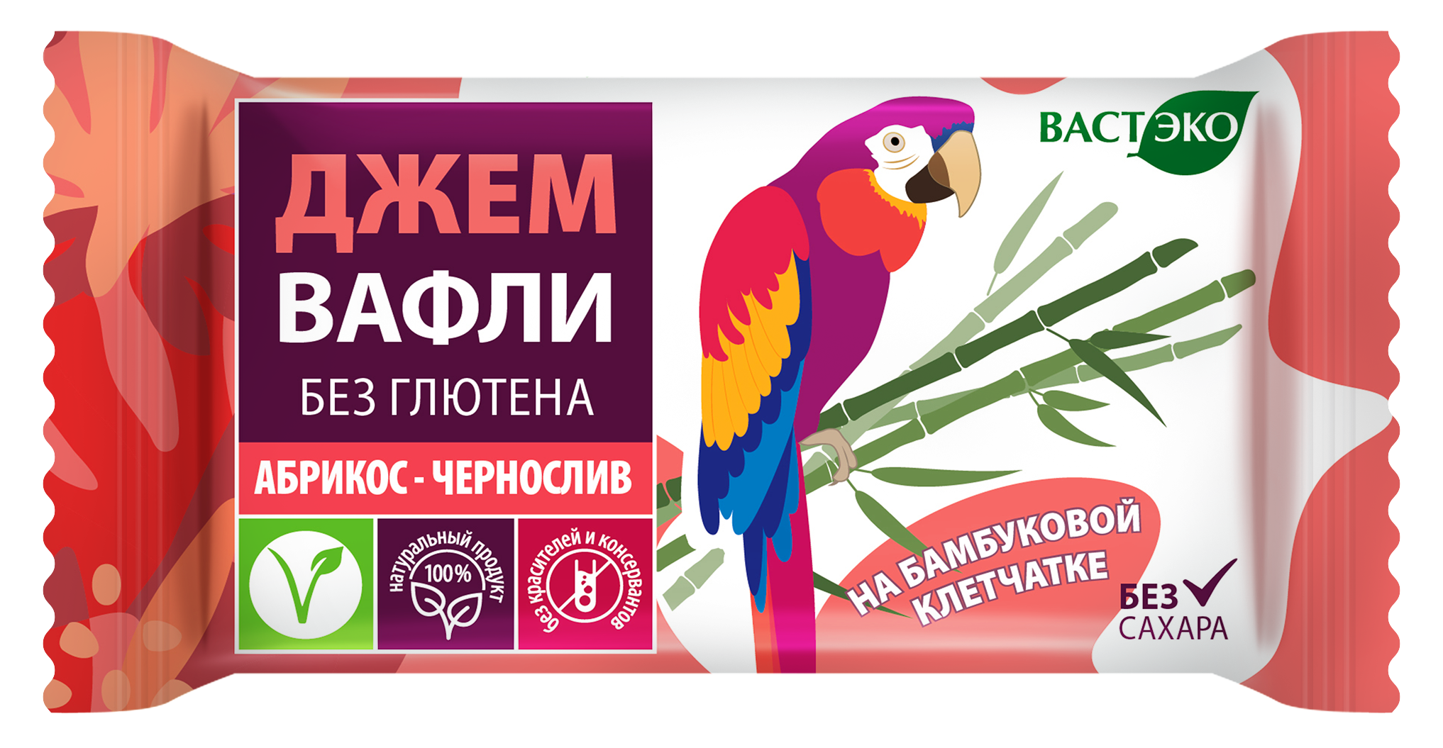 Джем - вафли Без Глютена от Вастэко - это превосходное низкокалорийное лакомство и полезный перекус, обогащенный фруктами и овощами.