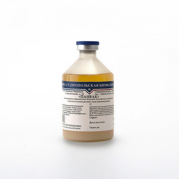 Вакцина против инфекционных болезней конечностей, клостридиозов и маститов мелкого рогатого скота инактивированная "Панвак" - это вакцина, предназначенная для профилактики инфекционных болезней конечностей, клостридиозов и маститов мелкого рогатого скота. Вакцинации подлежит мелкий рогатый скот с 3 месячного возраста.