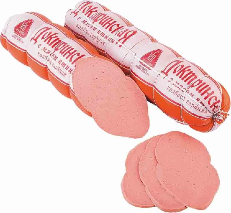 Вареная колбаса "Доктринская с мясом птицы"