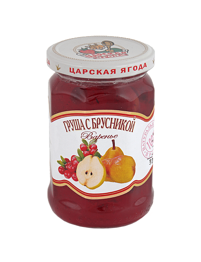Варенье «По-домашнему» из груш с брусникой — это изысканный десерт, сочетающий мягкие, сладкие ломтики груши с пикантной, слегка горьковатой брусникой.