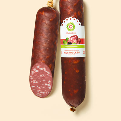 Колбаса Московская сделана по ГОСТу из отборной говядины, хребтового шпика крупного помола и всего лишь двух специй: черного перца и кардамона. Благодаря этому вы можете насладиться натуральным насыщенным вкусом говядины и превосходным ароматом настоящей колбасы.