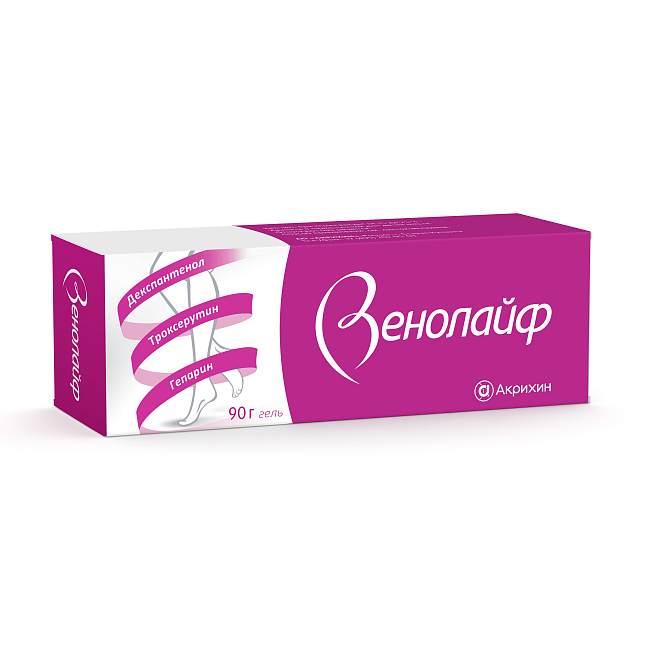 Венолайф - это комбинированный лекарственный препарат для наружного применения (гель), обладающий антитромботическим, ангиопротекторным (защищает сосуды) и противовоспалительным действием. Он эффективно устраняет отеки, боль, тяжесть в ногах, синяки и трофические нарушения, вызванные варикозом или травмами. Дозировки - 0,25 % + 5 % + 2 %. Вес - 90 г.